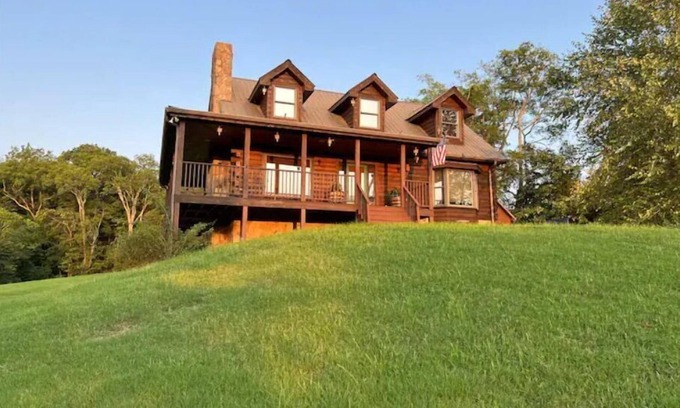 Beautiful and quiet Cabin on the hill. This 3 bedroom 2 full bath 1 half bath home sits on 5 acres and boasts a wrap-around porch that provides magnificent views. Family Room has a pull out sofa bed. Come enjoy the privacy of sitting on your porch overlooking the beauty of nature at its best! Complete seclusion and tranquility surrounded by wildlife. Relax with the whole family at this peaceful place to stay.
