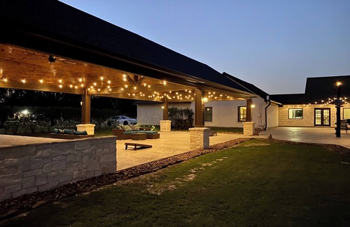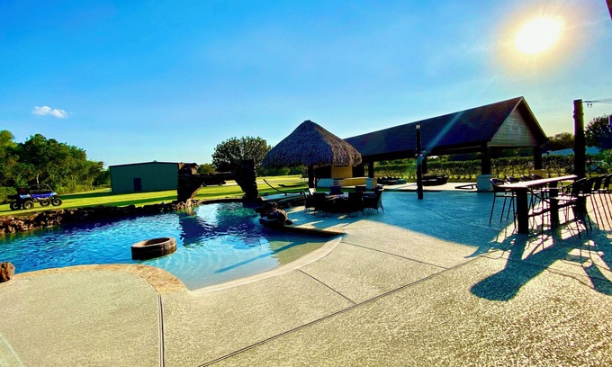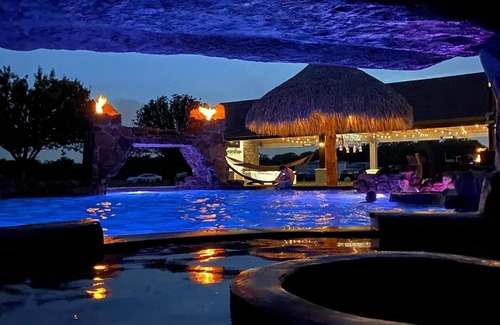 Supreme Dream is a beautiful home located 30 minutes from downtown Houston, 20 minutes from Kemah and 45 minutes from Galveston. It sits on 5 acres and has a resort style pool with a huge covered hot tub under the rock grotto. There is an outdoor kitchen under a Pavillion with a large swinging bed and bar swings to give you a feel of being at an actual resort. For an additional charge, there is an extra Pavillion that can set up to 100 guests. There is a stage w/ a huge TV and electrical for slide shows, karaoke or a band. The property has hosted corporate events, birthday parties, family reunions, weddings, baby showers, celebration of life ceremonies, church retreats & just to get away but stay close home retreats. You will have access to 3 Bedrooms, 3 full bathrooms, an outdoor half bathroom, a huge media room and a game room. There is a kitchen fully stocked, an ice machine, surround system for music around the house and outdoors, a 21 person dining table indoors, smart TV’s, a big sreen TV w/ cable and an Apple TV with over 200 movies, a slushy machine and 2 Murphy beds in the media room which allows 10 people to comfortably sleep in a bed. *Note this is an Alcohol, Drug and Smoke free property!