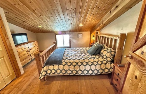 A private cabin loft space near Bozeman along the base of Bridger Mountains with stunning views of the city lights below. A natural spring whispers through feeding 4 gorgeous lilypad topped ponds with lush gardens & farm animals. A tree shaded gazebo area with beach, BBQ, & fire pit provides an enchanting entertainment opportunity.
