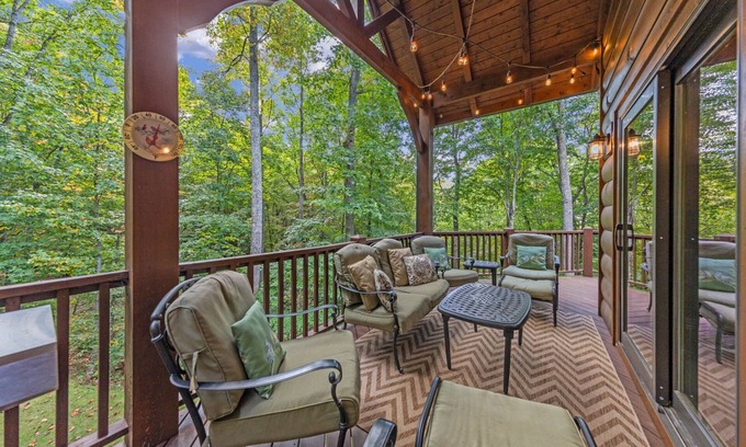 Who let the dogs out? Our Place to Paws offers you five private acres of mountain landscapes where dogs and humans can roam freely. Roast s'mores by the creek, belt out karaoke in the game room, or soak like royalty in that dreamy soaking tub. With luxe finishes and playful extras, this cabin's got tail-wagging charm and grown-up perks.
