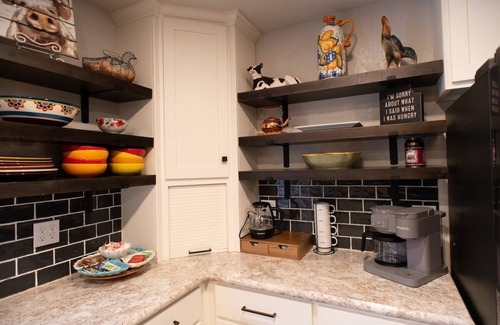 We live nearby but keep our garden and chickens at this property. We do visit the back property by the shops to care for the garden (in the summer) and the chickens year round. We do not interact with guests and respect your complete privacy in the home and fenced yards during your stay.