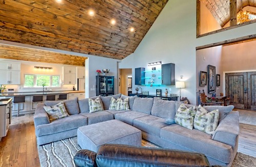 Your experience at this luxury cabin is elevated by an array of top-notch amenities designed for comfort and entertainment. Each of the five bedrooms features king-sized beds adorned with luxurious bedding, ensuring a restful sleep after a day filled with wedding festivities. The main floor boasts a fully equipped chef's kitchen with multiple ovens, perfect for hosting celebratory meals. Enjoy evenings around the fire pit or unwind in the oversized hot tub that accommodates up to eight adults. Additional features include game rooms outfitted with ping pong tables, vintage arcade games, and cozy outdoor seating areas that enhance your stay. For those planning a wedding, event planning services are available, including private chefs and mobile massage therapists to pamper you before the big day.