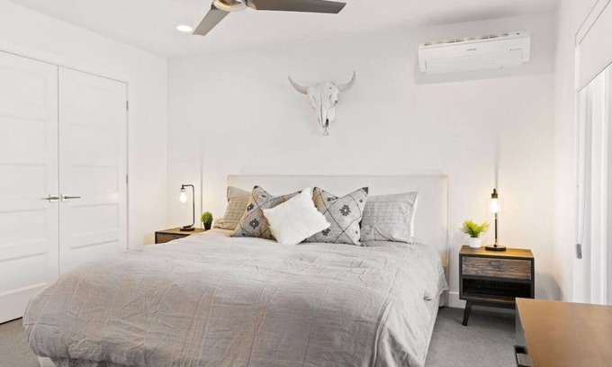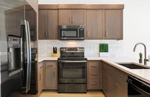 Contemporary Amenities: Enjoy modern conveniences such as HD Smart TVs in every room for entertainment access, an open-concept kitchen perfect for meal preparations, and a digital keyless entry system for effortless check-in.