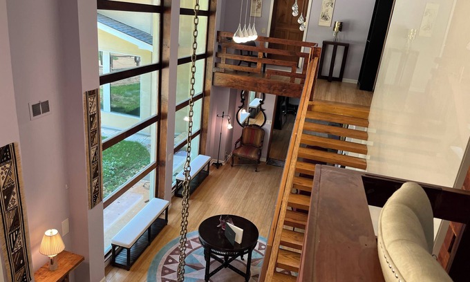Luxurious Nature Retreat with Modern Comforts, Atlanta Welcome to your serene sanctuary! The word Suyushi in Japanese suggests a place of calm and tranquility. This exquisite 6000 square feet 5-bed/4.5bath home, crafted from mostly wood and glass, all wood floor contemporary open plan with about 800 feet of furnished patio space.
