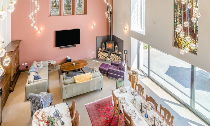 Wow!!!! The most magnificent Church conversion simply stunning for a luxury family or friends getaway in the Scottish Borders.. 2 steps to entrance.