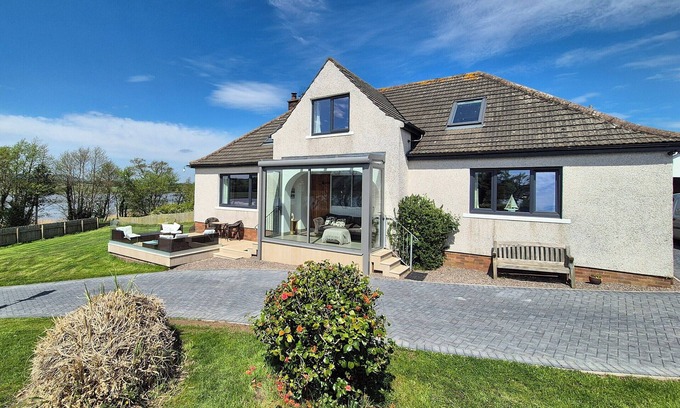 Bathroom: Bath, Cubicle Shower, Toilet. Air source heat pump central heating with solar panels, electricity, bed linen, towels and Wi-Fi included. Initial logs for wood burner included. Cot and highchair.. Enclosed lawened garden with terrace and garden furniture. Private parking for 4 cars. No smoking.. Gullsway is a spacious, detached house set in private gardens, enjoying an elevated position on the edge of Glencaple with a modern glass sun room and outstanding views over the Nith estuary and Criffel in the background. Gullsway offers spacious accommodation for a large family or a group of friends. The kitchen/dining room is a real social space, which in turn leads to the living room with its double aspect windows. The real gem however is the location and view itself, which not only offers an excellent level of privacy, but views over the estuary to the Criffel hill are breathtaking.