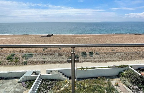 With uninterrupted stunning views across the Solent and direct access to the beach this large 3 storey house is perfect for a large family or a couple of families looking for a beach front escape on the south coast.. 1 step to entrance.