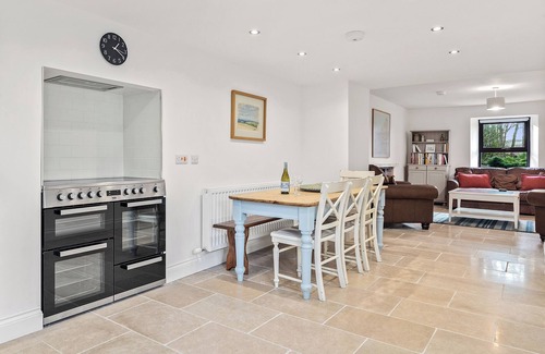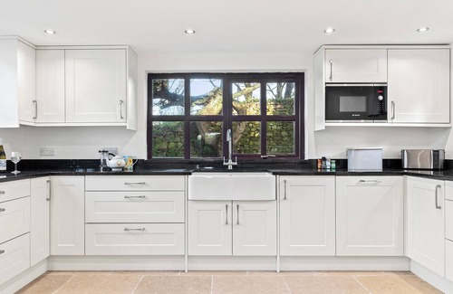 Bathroom: Bath, Cubicle Shower, Toilet. Electric central heating included May-September (£50 per week October-April). Electricity, bed linen, towels and Wi-Fi included. Initial logs for wood burners included. Cot and highchair. Garden and patio with garden furniture and barbecue. Private parking for 4 cars. No smoking.. Morfa Ganol is a stunning character farmhouse, set in an idyllic rural setting, near the coast, sleeping 11, with Wi-Fi, wood burner and private parking. Step inside the entrance hall, with its original tiled floor, and feel the warmth and character of this beautiful holiday home. Tastefully decorated throughout, the spacious living room offers a tranquil haven from the hustle and bustle of everyday life. The beamed dining room has a feature inglenook, original bread oven alcove and stone floor, offering the perfect space for entertaining family and friends spending precious time together. Relax in the second living room and conservatory which offers ideal accommodation for larger groups and families, space for the children to play or for quiet, blissful time out. Enjoy a leisurely holiday cooking in the spacious, well-equipped farmhouse kitchen/ breakfast room with modern appliances.