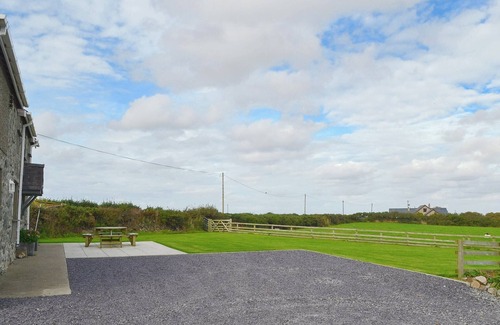 A farmhouse situated on a working farm with lovely views of both the countryside and the Irish sea. A quiet beach is just ¾ of a mile away.. 2 steps to entrance.