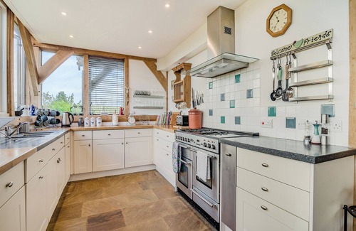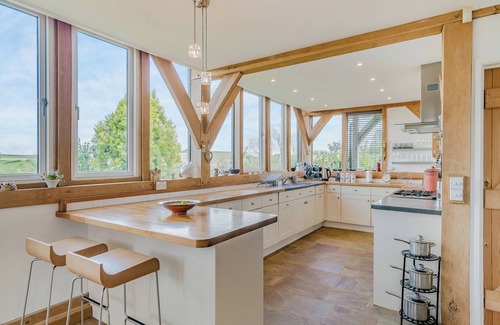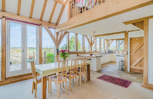 Bathroom: Bath, Heated Towel Rail, Toilet. Gas central heating, electricity, bed linen, towels and Wi-Fi included. Initial fuel for wood burner included. Travel cot and highchair. Welcome pack. Garden with patio, barbecue and garden furniture. Wood-fired hot tub for 4 (private). Private parking for 5 cars. No smoking. No stag or hen parties please. Please note: This property has a security deposit of £250.. Escape to Wylye Croft: Your Perfect Pet-Friendly Holiday Retreat in Martinstown near Dorchester Nestled amidst the picturesque landscapes of Martinstown, Wylye Croft stands as a quintessential haven for those seeking a tranquil and pet-friendly escape. This enchanting holiday let, a charming five-bedroom home, beckons travellers with the promise of unforgettable memories and breathtaking countryside views. With its impressive vaulted open-plan living area, a wealth of modern amenities, and a strategic location in the heart of Dorset, Wylye Croft is the ideal destination for your next multi-generational getaway.