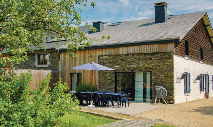 This vacation home in Nadrin, in the largest village of the municipality of Houffalize, is a farm renovated from scratch with its own garden of 3,000 m2. Under the fruit trees you can relax on the deck chairs provided. On the south terrace you can enjoy the sun in a sheltered position from early spring to late summer. On the first floor there is the living room with several seating areas, a semi-open fully equipped kitchen and a separate living room with sliding doors to the terrace. There is a utility room with washing machine and dryer and a guest toilet. On the second floor you will find four spacious and comfortable bedrooms. In the smallest bedroom there is a bunk bed. In addition, the two bathrooms are also located on this floor. Your comfort has also been thought of if you are staying with small children. So there are three baby beds, baby and toddler toys and the garden is completely fenced. The bars of the garden gate on the street side are also very close. The inflatable hot tub in the garden can be used on request and for a fee. The cover for this is attached via a zipper, again for the safety of the very young guests. Older children can play soccer and let off steam to their heart's content. There is plenty of space for this. You also have a very good wifi connection. The cottage is an ideal accommodation for a family vacation with children.