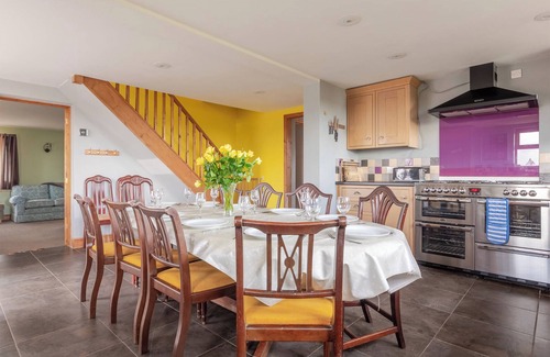 Tucked away boasting amazing countryside vistas, this super seaside holiday home is perfect for larger family groups, strolling distance to village amenities and the amazing sandy beach backed by dunes.. Ground Floor: