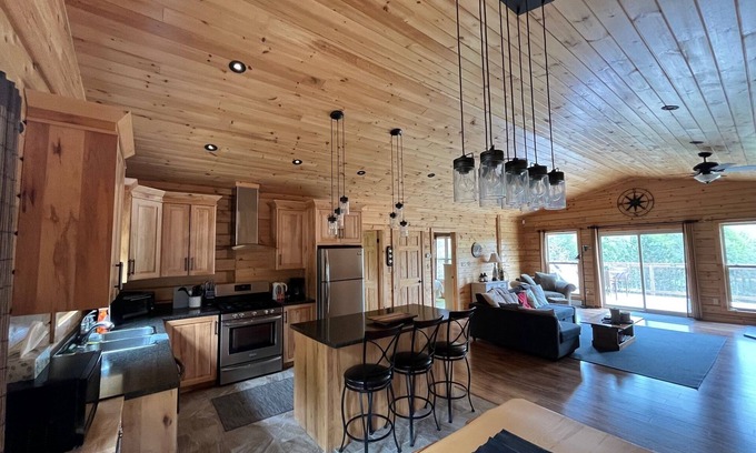 * newly built log cottage (2016) has five bedrooms & two pull-out sofas. Sleeps 10 comfortably