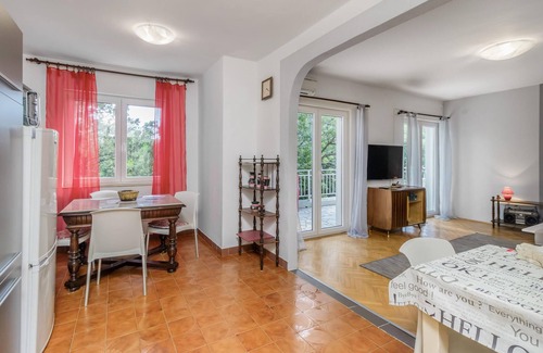 Povile is a small village not far from Novi Vindodolski. Here awaits you this vacation home with two floors with external stairs. On the ground floor is the covered terrace and on the open terrace on the upper floor you have a beautiful view of the sea. On the property there is also a garden terrace with barbecue, where you can enjoy sociable barbecue evenings. In just a few minutes walk you can reach the beautiful beach in Povile. The friendly homeowner lives not far from the cottage.