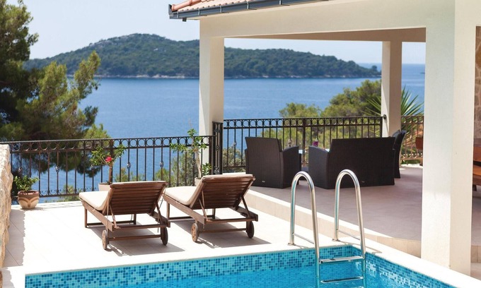 The modern holiday home with pool is located on a hill on the island of Korula, in the region with the most hours of sunshine. Look forward to many relaxing hours with family or friends in the cosy living room. Start your day with a workout in the gym before enjoying breakfast on the terrace. You can also take a refreshing dip in the pool and enjoy the magnificent panoramic view of the sea and the surrounding islands. The house is located on a country road, but thanks to its location there is plenty of privacy.