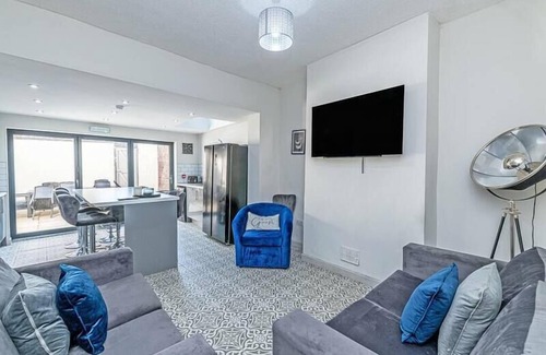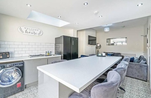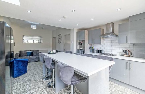 Beautifully presented 5 bedroom house that sleeps 10 in Liverpool. This stylish house comes with 5 bedrooms, 5 bathrooms, a fully fitted kitchen, living area with flat screen TV and free WiFi.