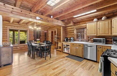 Escape to our Lake Powers log cabin on 1.3 acres, just a short stroll to the sandy beach or boat launch. Enjoy the heated pool, hot tub, and onsite boat storage. Perfect for families—cribs, toys, baby-proofing, a big yard, free firewood, and fast WiFi. Grown-ups can unwind at the full bar or play billiards!