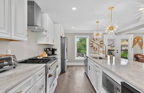 -Fully Equipped Gourmet Kitchen – Gas stove, marble island, wine cooler, Keurig, toaster oven, blender, baby high chair, Pack 'n Play, and more.