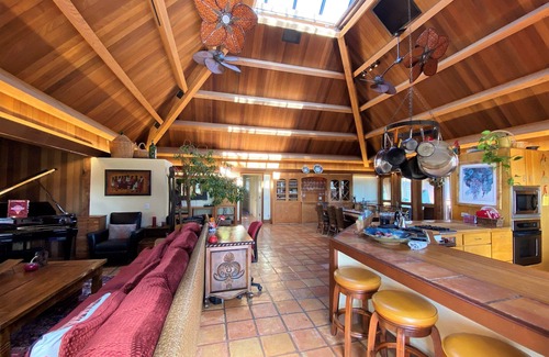 The property's great room is a unique feature of the estate. It offers an open living environment that is perfect for hosting guests or just relaxing with family and friends. The room is spacious, with natural light coming in from the oversize skylight. It's an excellent space for socializing, entertaining, or just lounging.