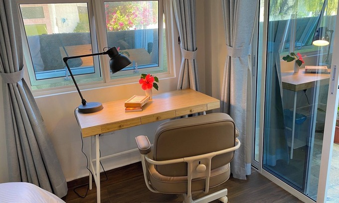 A charming five-bedroom guesthouse, featuring a front garden. Located just steps away from the Calm Beach, this intimate retreat has an outdoor kitchenette and a BBQ pit for culinary adventures. Just a block from the beach, the guesthouse offers easy access to sandy shores and ocean breezes. Our small speed boat is also available for guests to engage in various water activities and trips around the atoll, visit the fantastic surf points, enhancing your seaside getaway.