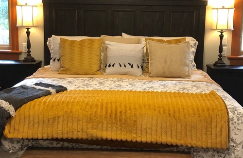 The farmhouse is 5 bedrooms, 3.5 bathrooms and features 1 king bed, 3 queen beds, 5 single beds and one futon in the rec room. Our farmhouse comfortably sleeps 15 people. If you have very young children, we provide a crib, high chair/s and gate ONLY UPON REQUEST. There are 6 smart TVs in the home (living room, Rec room, Master King bedroom, and upstairs in the Teal, Pink AND green Queen bedrooms.