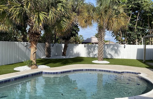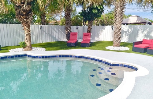 Enjoy a stylish experience at this centrally-located place. A walk away from most desirable synagogues in the Aventura area. 5 minutes from world renowned Aventura Mall and 10 minutes from the beautiful south Florida beaches. Enjoy the neighborhood lake park with wildlife and playgrounds. Live the South Florida dream in this newly remodeled villa with resort style pool and back Yard. This gated community villa comes with everything you need BBQ, pool accessories , brand new smart TV’s, pool table , and other entertainments. We provide all you need