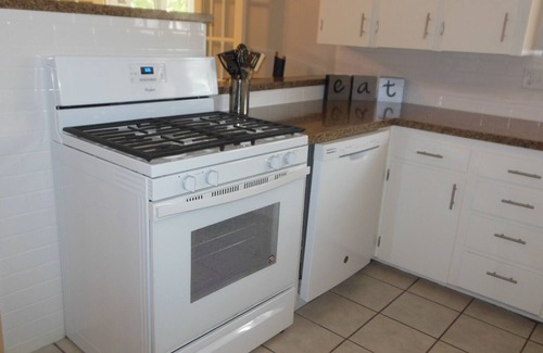 Five bedrooms in this beautiful ranch along with dining room, great room, kitchen with all the extras, and gorgeous light and bright all season room. Near I-35 for easy access to movies, shopping, sports activities, or simply enjoying the peaceful shaded back yard deck and patio. 1.5 miles from the BNSF Logistics Park, 1.5 miles from Meadowbrook Rehabilitation Hospital. Inviting front porch along with master suite which can accommodate children and adults. Plenty of room for the portable bunk bed or port-a-crib if needed (see costs) King sized bed in the master suite along with ceiling fan, large closet and master bath attached to laundry. Hardwood floors throughout except in master suite and all-season room which both have updated carpeting. Kitchen provides, frig with icemaker, full gas range, microwave, coffee nook, eating area and tile floors. Formal dining room with games available. Great room has television, lots of seating and opens to the dining area.