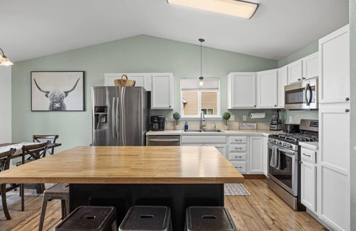Welcome to our cheerful getaway! This spacious 5-bedroom, 3-bathroom home offers comfort and fun for everyone. Relax in the hot tub or enjoy movie nights on the 75" TV with surround sound. The fully fenced yard is perfect for your furry friends, and there are no list of chore, only taking trash out and dishes we will do everything else! Ideal for families or groups, our pet-friendly home provides a delightful escape that's a step above the rest. Book your stay and make wonderful memories here!