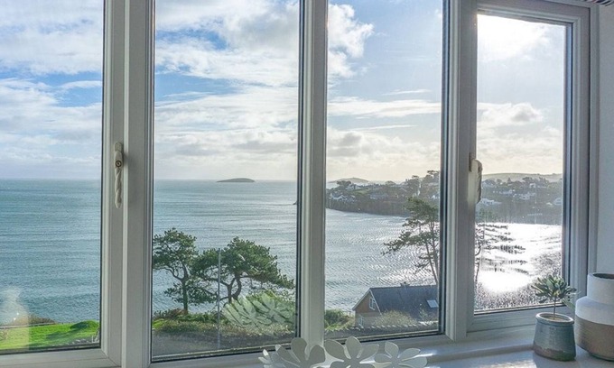 - Few mins walk from the beach! Large detached house, stunning sea views, hot tub!