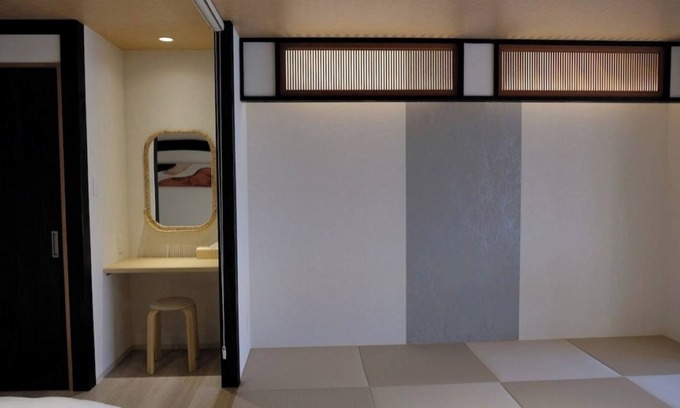 5F 35 Japanese tatami room for 4 guests double low bed 2single futon beds