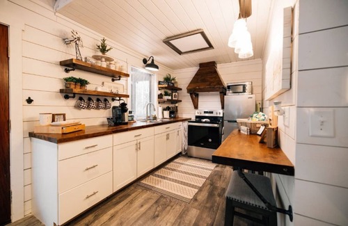 High speed internet access, fully equipped kitchen, Queen bedroom downstairs is the main bedroom, but we also have a king in the loft. Bathroom features tiled walk in shower with shower bench, LED lit mirror, bluetooth speakers. Cottage deck has a small firepit sitting area and there is also a larger deck built overhanging the creek with comfy seating and firepit. The front porch swing is the perfect touch for enjoying a cup of coffee or reading a book. Several sitting areas along side creek to enjoy the beauty of nature, along with a wooded trails. NO PETS ALLOWED. NO CHILDREN ALLOWED. THIS RETREAT HAS BEEN CREATED AND DESIGNED FOR ADULTS ONLY TO HAVE A PLACE TO COME FOR TOTAL PEACE & QUIET, TO RECONNECT AND GET AWAY FROM THE STRESS AND WORRIES OF LIFE. OR FOR COUPLES TO COME FOR SOME SECLUSION AND ROMANCE WITH THAT SPECIAL SOMEONE.