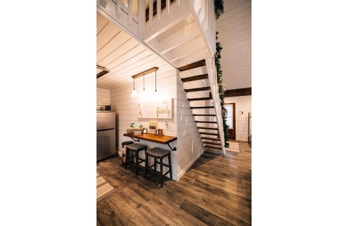 Cottage sits overlooking our beautiful creek, surrounded by trees with total privacy & serenity. You will feel like you are in a wooded sanctuary. Lots of birdsongs! Front porch has swing & attached deck with view of creek! Deck hanging over the creek has lava rock fireplace & lots of comfy seating. Hammock beside creek. Loft is super cozy with a king size bed, luxury cooling memory foam mattress. Downstairs bedroom has a queen size luxury pillowtop mattress with an adjustable base that has all the bells and whistles, such as massage, bluetooth, led lighting and several adjustments for your comfort to sleep, lounge or watch TV. Bluetooth speaker in tiled walk in shower, Luxury bath. Decorated seasonally. Fully equipped kitchen. Keurig. Recliner sofa. Games. Books.