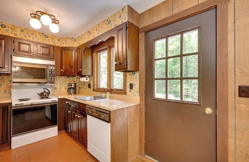 From scenic trails and powdery slopes to vibrant fall foliage, this Franconia vacation rental puts you at the heart of New Hampshire's great outdoors. The 5-bedroom, 3-bath house makes it easy to recharge after exploring the White Mountains — unwind in the retro cabin-inspired interior or head outside to watch the sunset on the deck. Come enjoy fresh air in the company of family and friends at this alpine hideaway!
