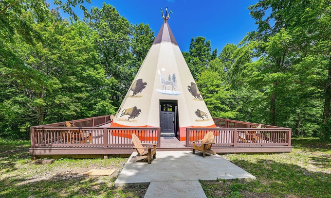5 Mi to Mammoth Cave NP: Teepee Studio Escape has 1 Bedroom , 1 Bathroom, and max occupancy of 4 people. The minimum rental for this property is 1 nights, but this can change depending on the season you plan on staying. Previous guests have given good rated it, and VRBO labeled it a top-rated Apartment because of the excellent services rendered by the owner or manager of this Apartment, and has consistently provided great experiences for their guests. Most families or guests that use it recommend it to their friends and some of them are repeat guests. Apartment has a friendly neighborhood, and the Mammoth Cave has interesting places to visit. If you want to learn more about the Apartment in Mammoth Cave, such as places to visit and things to do nearby, you can check below to learn more.