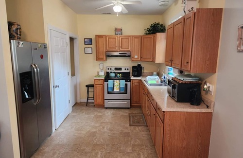 Roku ready Smart TVs in living room and primary bedroom. Wi-Fi. All sheets, towels, dishes, glasses, cookware, Kuerig machine, single cup or pot. ground coffee, tea, sugar, sweeteners, and Basic starter seasonings, paper products, basic condiments provided by owner!