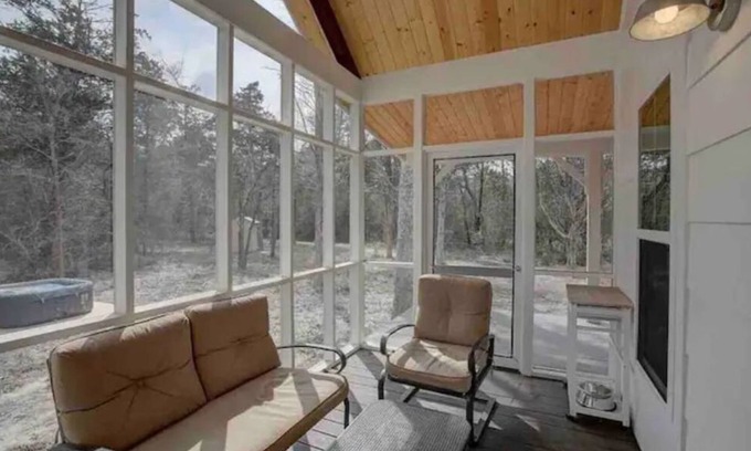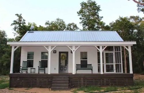 Escape to our 5 Million Stars Woodland retreat, a modern and new cabin in Flatonia, Texas. Experience contemporary luxury and rustic charm in this serene woodland getaway. Stunning hardwood floors, a fully equipped kitchen, and panoramic views await. Unwind on the screened-in porch, explore nearby towns, and immerse yourself in nature. Book now for tranquility and rejuvenation!