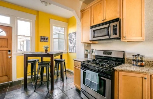 This roomy, private, remodeled historic condo is conveniently & centrally located in downtown Boulder with ample space to relax, dine on the porch, get that important work assignment done or just enjoy a movie on the 55" flat screen. The bedroom with king bed & en suite bathroom is comfortable, private, and has all the conveniences you'll need in your temporary Boulder home. Near biking trails and walking distance from some of the best restaurants & cafes that downtown Boulder has to offer!