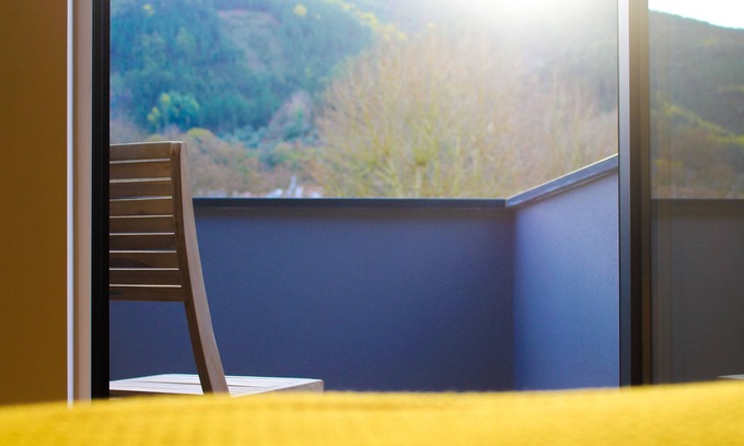 Located in the centre of the beautiful village of Góis, Casa de Campo Vale do Ceira has this twin room with a balcony and river views.
