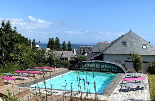 5* property, pool, spa, panoramic view over bay, very close to beach is located in Morgat. 5* property, pool, spa, panoramic view over bay, very close to beach provides accommodation, featuring Sports/Activities, Entertainment, Internet, among other amenities. This Villa features Sports/Activities, Entertainment, Internet, to make your stay a comfortable one.
