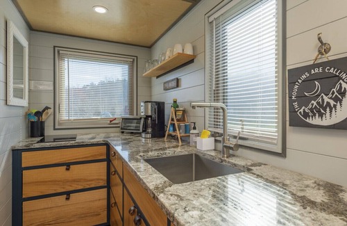 #5 Shining Rock · Shining Rock @ Acony Bell Tiny Home Village has 2 Bedrooms , 1 Bathroom, and max occupancy of 5 people. The minimum rental for this property is 1 nights, but this can change depending on the season you plan on staying. Previous guests have given good rated it, and VRBO labeled it a top-rated House because of the excellent services rendered by the owner or manager of this House, and has consistently provided great experiences for their guests. Most families or guests that use it recommend it to their friends and some of them are repeat guests. House has a friendly neighborhood, and the Mills River has interesting places to visit. If you want to learn more about the House in Mills River, such as places to visit and things to do nearby, you can check below to learn more.