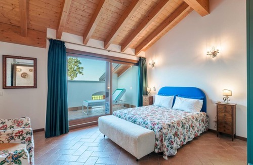Bedroom: Spacious room with a queen-size bed and access to the second terrace, offering breathtaking views of the surrounding countryside.