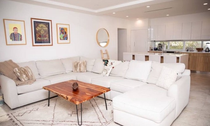 200yds, 0.1 miles) from beach access! We are one of if not the closest home rental to the beach! We have over 70 reviews on other sites. - split floor plan with 2 queen beds (electric frames) with 2 full bathrooms + large 7 seater sectional. Every room has a 55-65in TV with Comcast, fast Wifi, HBOMax, Netflix, Hulu, AppleTV.