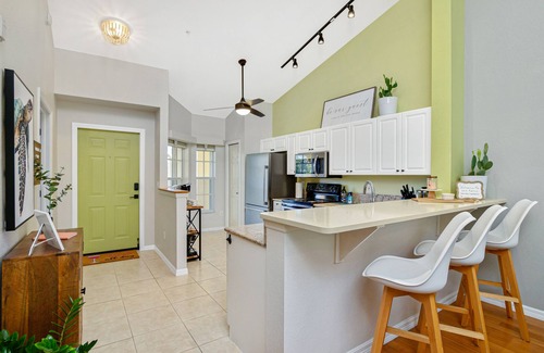 our 1100 sq/ft open concept retreat perfect for a relaxing getaway, or adventure packed vacation. Our home is filled with all the comforts of a 50" Smart TV, in main living area, 32" Smart TV in both bedrooms, kitchen fully equipped with new stainless steel appliances, coffee station, open concept living space. The vaulted ceiling, complements the indoor/outdoor living you will find in our home. Enjoy morning coffee or an evening glass of wine on your private screened in Lanai. Our third floor Condo provides a perfect view of the pool area from the comfort of your master suite queen bed. Our Condo has all the extras you would expect from our 5 Star Property. Board Games, cordless phone chargers, High Speed internet, Cable, work out equipment and much more.