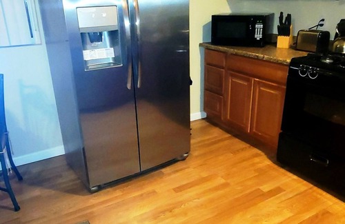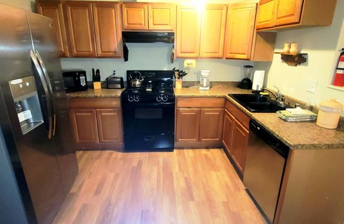 Fully furnished kitchen; everything need to prepare meals if you desire. Dishwasher to do your dishes while you are out playing. You will find all the small appliances you need, from coffee maker to crock pot.