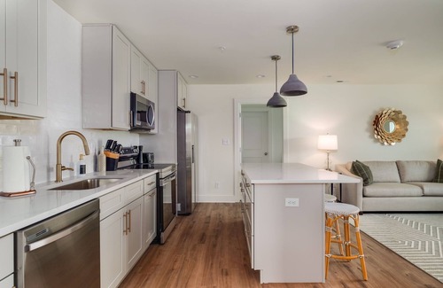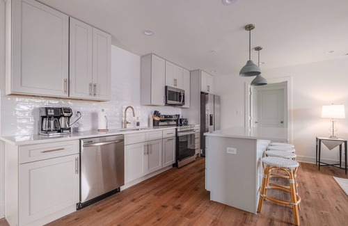This beautiful two bedroom, two bathroom unit has all the amenities you need to feel right at home! Both bedrooms are equipped are with an en suite bathroom. The master features a stunning glass door walk in shower. The guest bath features a shower/tub combo. We do offer an air mattress for additional guests for a $25 fee. Please let us know if you need it. Main Street Flats is the premier lodging destination in downtown Trussville! We look forward to hosting you!