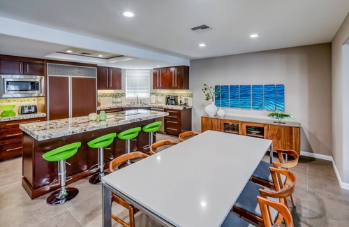 Parker House Rental is a River Front on the Parker Strip, remodeled 3 Bedroom, 3 Bath with a bonus room off the master bedroom for additional sleeping arrangements. Located at a wide section of the Colorado River where the current is slow, its perfect for swimming right at the dock and floating in the water enjoying your beverage on a hot summer day. Recently remodeled as warm and modern, bringing the colors of the river environment into the house with neutral tones accented with blues and greens. This house is elegant and relaxing and sleeps 10 comfortably. With the amenities this house provides you will be so comfortable will want to return again and again.