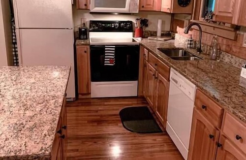 The granite counter kitchen is well appointed and has everything you need with brand new cookware, dishes, and coffee maker.