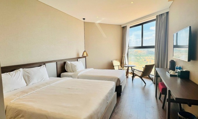 𝐍𝐨 𝐝𝐞𝐭𝐚𝐢𝐥 𝐢𝐬 𝐨𝐯𝐞𝐫𝐥𝐨𝐨𝐤𝐞𝐝 𝐚𝐭 𝐭𝐡𝐢𝐬 𝐜𝐡𝐚𝐫𝐦𝐢𝐧𝐠 𝐚𝐧𝐝 𝐮𝐩𝐬𝐜𝐚𝐥𝐞 𝐩𝐥𝐚𝐜𝐞 𝐭𝐨 𝐬𝐭𝐚𝐲. 𝐋𝐨𝐜𝐚𝐭𝐞𝐝 𝐢𝐧 𝐚 𝟓-𝐬𝐭𝐚𝐫 𝐡𝐨𝐭𝐞𝐥 𝐚𝐧𝐝 𝐫𝐞𝐬𝐨𝐫𝐭 𝐜𝐚𝐥𝐥𝐞𝐝 𝐀𝐏𝐄𝐂 𝐌𝐚𝐧𝐝𝐚𝐥𝐚 𝐌ũ𝐢 𝐍é , 𝐢𝐭 𝐨𝐟𝐟𝐞𝐫𝐬 𝐨𝐧𝐞 𝟏.𝟖 𝐦𝐞𝐭𝐞𝐫 𝐛𝐞𝐝 𝐚𝐧𝐝 𝐨𝐧𝐞 𝟏.𝟐 𝐦𝐞𝐭𝐞𝐫 𝐛𝐞𝐝, 𝐞𝐧𝐨𝐮𝐠𝐡 𝐟𝐨𝐫 𝐚 𝐟𝐚𝐦𝐢𝐥𝐲 𝐰𝐢𝐭𝐡 𝟐 𝐚𝐝𝐮𝐥𝐭𝐬 𝐚𝐧𝐝 𝟐 𝐜𝐡𝐢𝐥𝐝𝐫𝐞𝐧. 𝐓𝐡𝐞 𝟑𝟐 𝐬𝐪𝐮𝐚𝐫𝐞 𝐦𝐞𝐭𝐞𝐫 𝐬𝐭𝐮𝐝𝐢𝐨 𝐜𝐨𝐦𝐞𝐬 𝐰𝐢𝐭𝐡 𝐚𝐧 𝐞𝐱𝐜𝐞𝐩𝐭𝐢𝐨𝐧𝐚𝐥 𝐨𝐜𝐞𝐚𝐧 𝐯𝐢𝐞𝐰 𝐚𝐧𝐝 𝐨𝐧𝐥𝐲 𝐚 𝐬𝐡𝐨𝐫𝐭 𝐰𝐚𝐥𝐤 𝐚𝐰𝐚𝐲 𝐭𝐨 𝐭𝐡𝐞 𝐛𝐞𝐚𝐜𝐡. 𝐓𝐡𝐞 𝐚𝐦𝐞𝐧𝐢𝐭𝐢𝐞𝐬 𝐢𝐧𝐜𝐥𝐮𝐝𝐞 𝐛𝐚𝐫𝐬, 𝐦𝐢𝐧𝐢-𝐦𝐚𝐫𝐭𝐬, 𝐜𝐚𝐟𝐞𝐬 𝐚𝐧𝐝 𝐫𝐞𝐬𝐭𝐚𝐮𝐫𝐚𝐧𝐭𝐬 𝐛𝐞𝐥𝐨𝐰 𝐥𝐞𝐯𝐞𝐥𝐬 𝟏 𝐚𝐧𝐝 𝟐, 𝐭𝐡𝐞 𝐬𝐭𝐮𝐝𝐢𝐨 𝐥𝐨𝐜𝐚𝐭𝐞𝐝 𝐨𝐧 𝐥𝐞𝐯𝐞𝐥 𝟏𝟏.