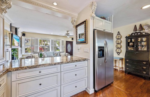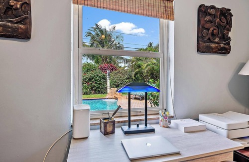 A stone's throw away nestled amongst multi million dollar homes from the intracoastal waterway, and across the Island of Palm Beach. this 1550 sq. ft. tropical pool home is a premier oasis situated among the best Palm Beach has to offer. A back yard with a private pool makes our house a dream for couples and entertaining alike. privacy hedges keep the house relatively secluded. Designer decorated in a classic Palm Beach elegance, with reclaimed hardwood floors, a chef's kitchen, outdoor bar B Q, WiFi, and a spacious master bedroom with a 20 foot box beam ceiling. Enjoy Pristine Beaches, boating, fishing, Polo, golf, Antique shows, theater, Performing Arts, comedy, shopping, outdoor cafes, and nightlife along with the serenity of your own oasis in this South East, West Palm Beach location.