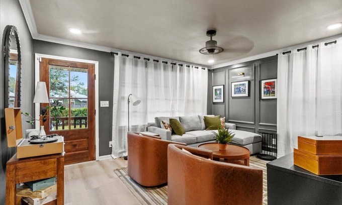 "The Fletta" is your perfect Augusta getaway. Nestled in the prestigious Highland Park area, this stylishly designed cozy dream home features a hot tub, fire pit, a large park for kids, outdoor private patio seating, a 6-burner propane BBQ, cornhole, board games, a craft ice refrigerator, and 5 TVs — including a 75-inch in the living room and a 55-inch above the hot tub. It also boasts luxury appliances and an EV charger! Just a 1-minute drive from the FBO at Daniel Field, The Fletta offers the ultimate in luxury, service, and comfort during your stay.